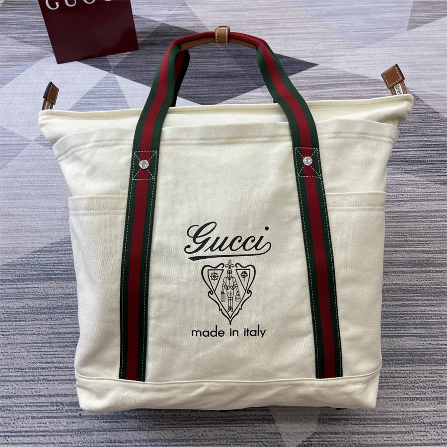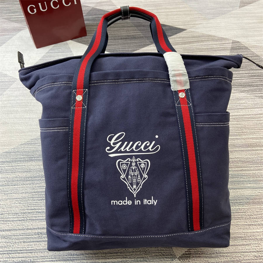 FDK【配专柜礼品袋】以自由、活力与社群为主题,2025春夏系列焕新呈献多款旅行单品和男士包袋,为出行探索更添妙趣。这款帆布包顶部缀饰缝线细节,配以深蓝色皮革滚边,正面饰以“Gucci Made in Italy”徽章印花。