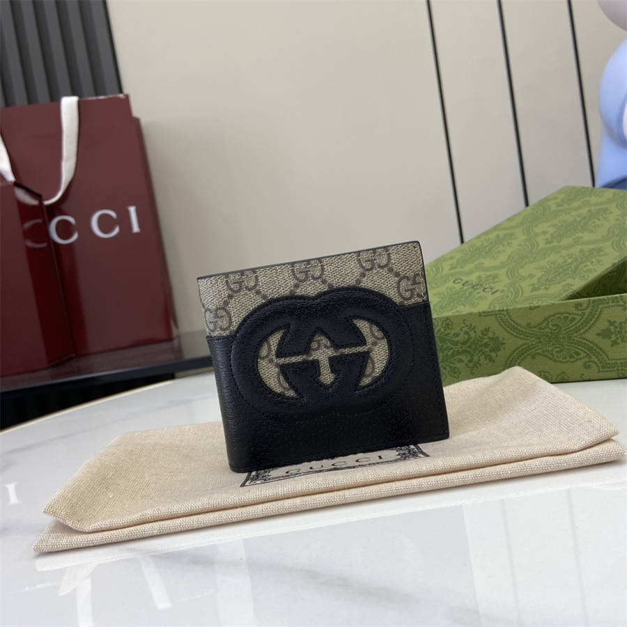 CCK《配全套原厂绿盒包装》饰镂空互扣式双G钱包。自20世纪60年代问世至今,标志性互扣式双G标识一直是Gucci各个系列不可或缺的设计元素。该标识源自品牌创始人Guccio Gucci先生的姓名首字母,以各种形式和风格不断得到焕新演绎。在这款以皮革与GG Supreme帆布打造的钱包上,它以镂空细节匠心呈现,塑就兼具现代风尚与经典格调的配饰。黑色和啡色GG Supreme帆布,黑色皮革滚边,云纹织物衬里,互扣式双G镂空细节,内部:8个卡片隔层,2个钞票隔层。