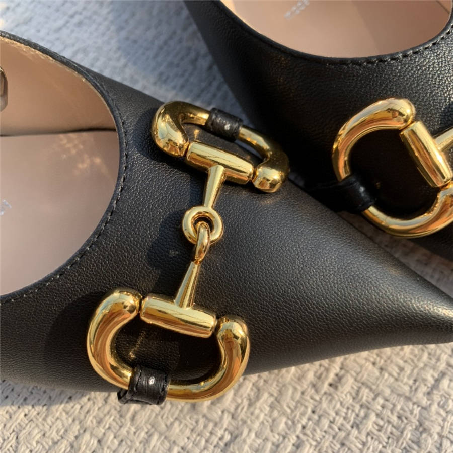 G家新款女士马衔扣皮革浅口鞋小猫跟凉鞋616596