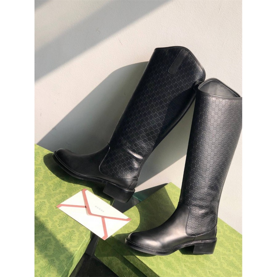 494516 GG Supreme压纹皮革女靴骑士靴长靴