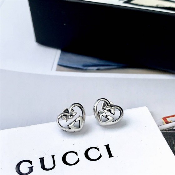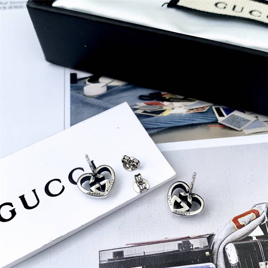 G家新款interlocking系列双G字母爱心纯银耳钉耳环