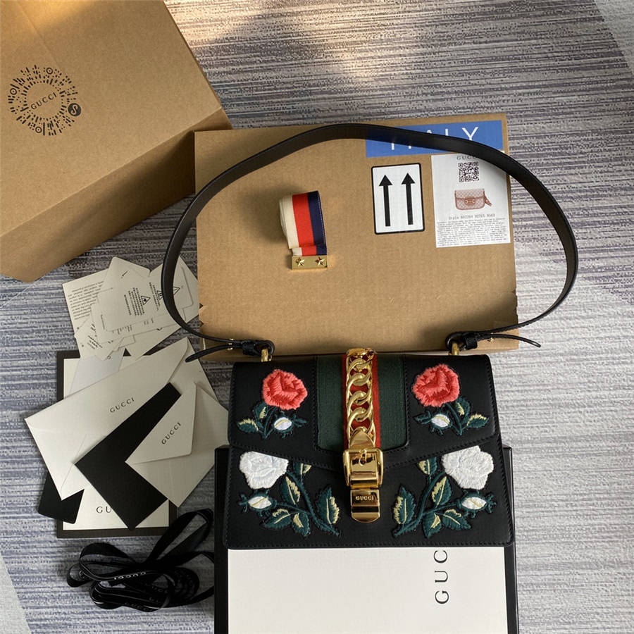 【配全套专柜包装】‼️GG经典颇具结构感的中号真皮肩背包,️升级版配有3条可更换肩带,一条为真皮打造,另一条为Sylvie织带丝带,第三条是市场唯一的一个升级版(可拆卸可调节斜挎肩带)。金属搭扣源自品牌经典,与织带条纹精致搭配,趣味十足。采用光滑的经典皮革打造!型号:421882,尺寸:25.5*17*8