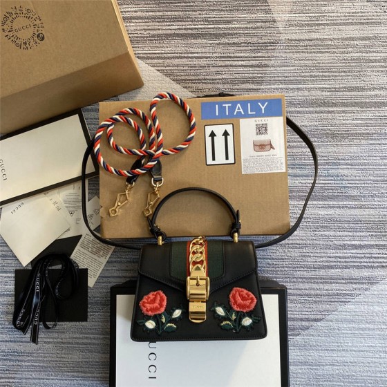【配全套原厂包装】‼️2017 Sylvie#470270 小号真皮手提包 采用绚丽的手提包造型, 真皮下镶有尼龙织带,饰以金色链带和扣袋。采用光滑,经典皮革精制而成。型号:470270 尺寸:20*14*8cm