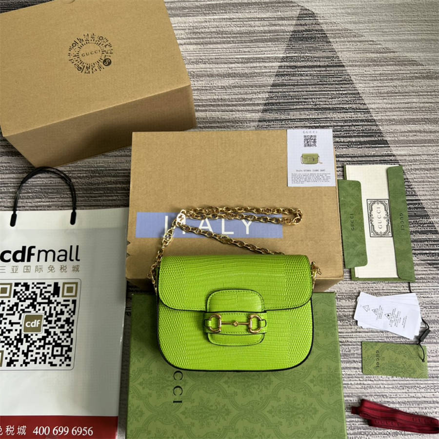 675801 Gucci Horsebit 1955系列蜥蜴皮迷你链条马鞍包