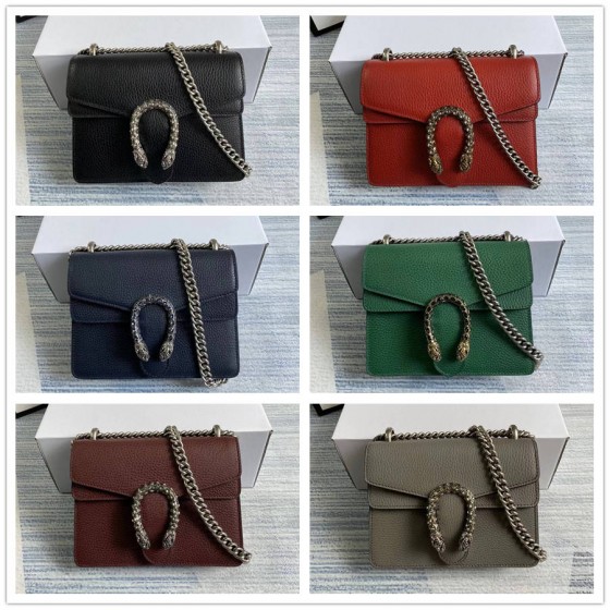 EIK【配全套专柜包装】‼️风靡全球滴酒神包 原版荔枝纹牛皮,皮质柔软又饱满,精巧的做工,饰以源自酒神Dionysus的希腊神话故事的双虎头扣,饰以施华洛水晶点缀,粗犷的链条,大气又浪漫 型号:421970 尺寸20×15.5×5cm
