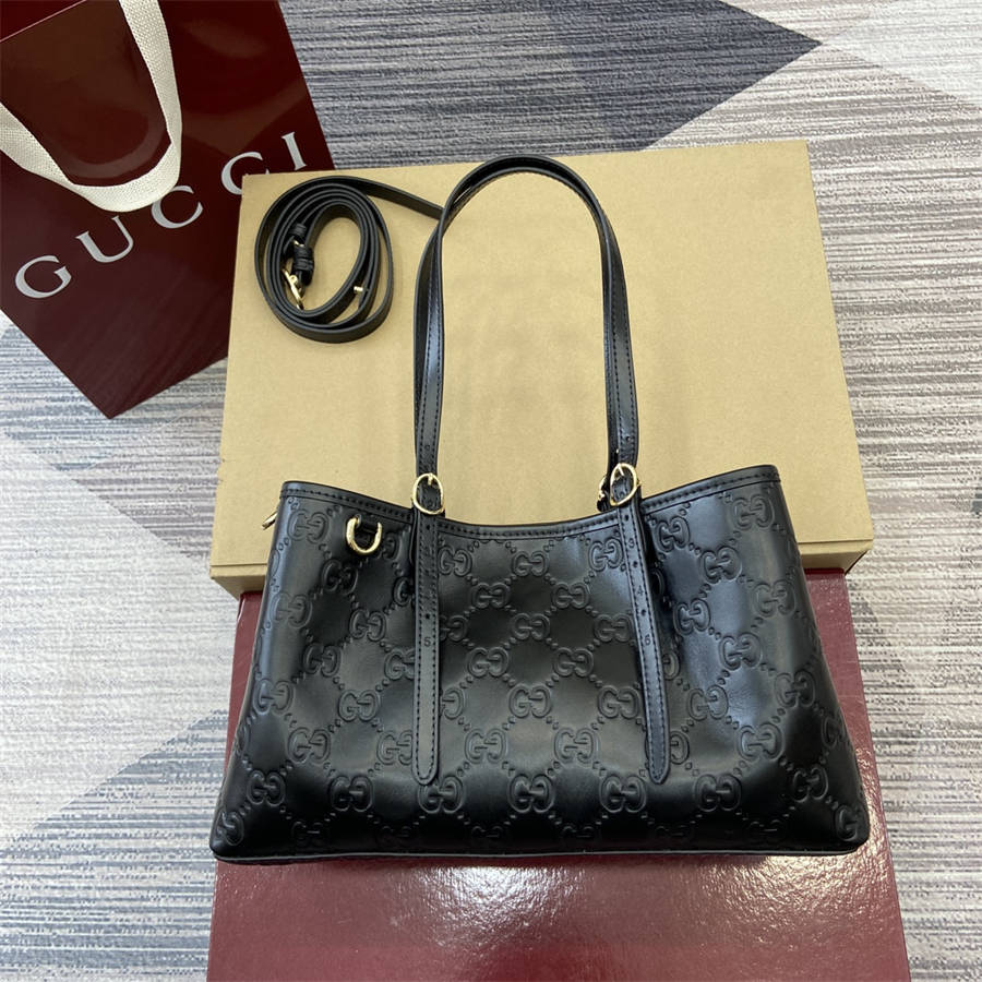 815214 GG Emblem系列中号托特包购物袋(压纹牛皮)