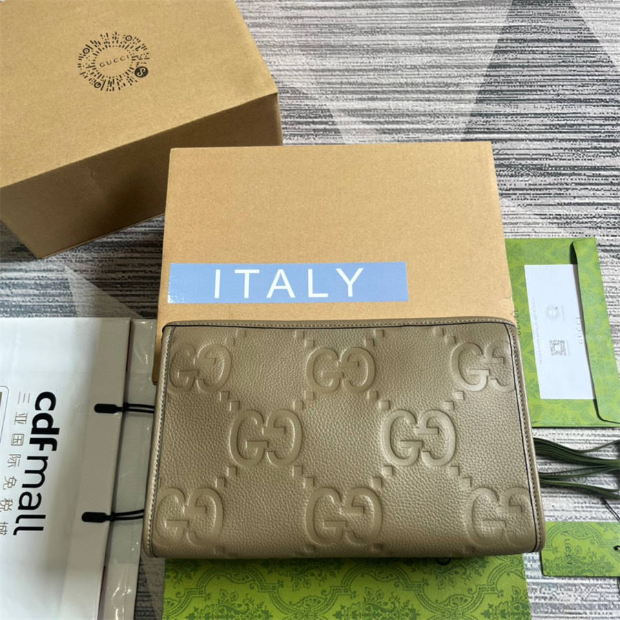 EFK(配全套包装) GG印花压纹将小件日用单品打造成时尚日常配饰。新颖的纹理与饰面在全新系列中依旧大放异彩,尽展澎湃活力和个性魅力。这款手拿包以灰褐色皮革匠心打造,通体铺陈超大号双G标识。