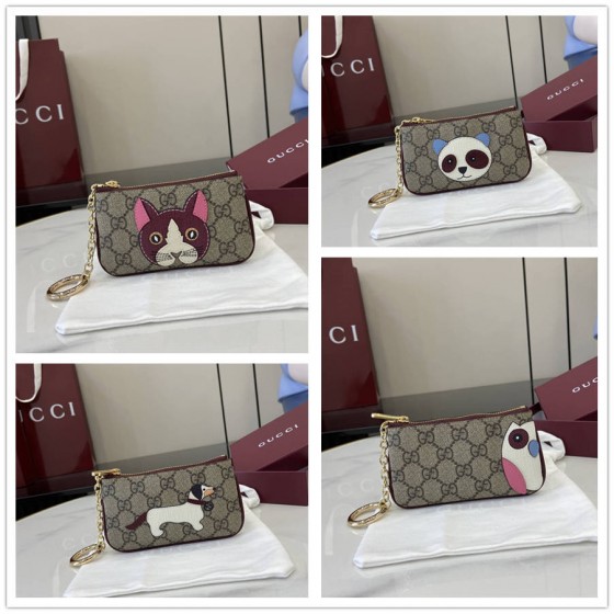 BJK《配全套原厂绿盒包装》饰小狗细节GG迷你钱包,猫咪、小狗和熊猫等可爱俏皮的动物们齐聚一堂,为多款以全新GG字母图案涂层织物打造的小件配饰添上点睛之笔。这些趣致图案采用丝网印刷技术和皮革拼布工艺匠心制作。小狗细节为这款迷你钱包注入满满活力。米色和深棕色全新GG字母图案涂层织物,小狗细节皮革贴饰,塔夫绸衬里,