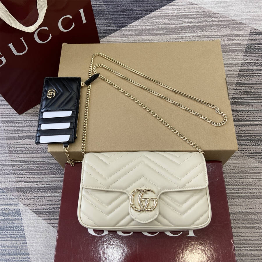 GDK【配全套专柜包装】这款GG Marmont系列迷你手袋采用米灰色V型皮革匠心制作。这款配饰采用经典双G配件细节,可拆卸皮革卡片夹更为这款手袋锦上添花。