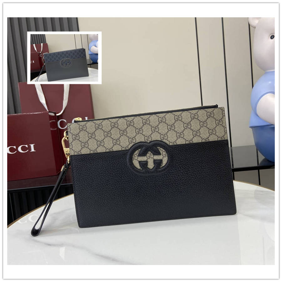 DKK《配全套原厂绿盒包装》饰镂空互扣式双G收纳袋。这款收纳袋缀饰镂空皮革互扣式双G细节,巧妙搭配GG Supreme帆布,塑就兼具现代风尚与经典格调的配饰。自20世纪60年代问世至今,标志性互扣式双G标识一直是Gucci各个系列不可或缺的设计元素。该标识源自品牌创始人Guccio Gucci先生的姓名首字母,以各种形式和风格不断得到焕新演绎。黑色和灰色GG Supreme帆布,灰色皮革滚边,云纹织物衬里,互扣式双G镂空细节,内部:4个内部卡片隔层和1个外部翻盖口袋,腕带(12厘米高)。