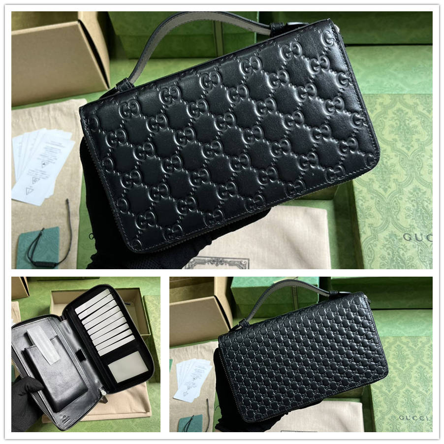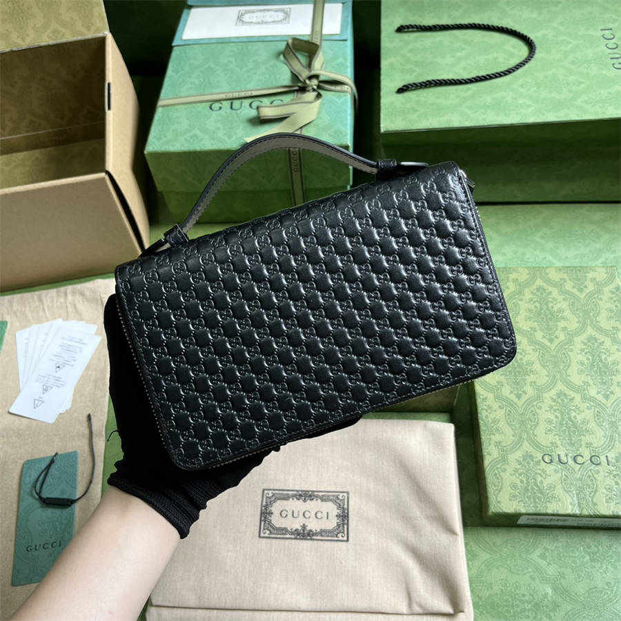 DEK《配全套原厂绿盒包装》超级双G差旅文件包。黑色超级双G设计于2023早秋系列中耀眼回归,精彩演绎多款小号皮革单品。作为对Guccio Gucci先生姓名首字母的焕新演绎,超级双G图案以超大尺寸亮眼呈现,营造经久不衰的品牌标识魅力。这款差旅文件包采用拉链开合,标志性皮革材质为整体设计注入精髓。云纹织物衬里,拉链开合。