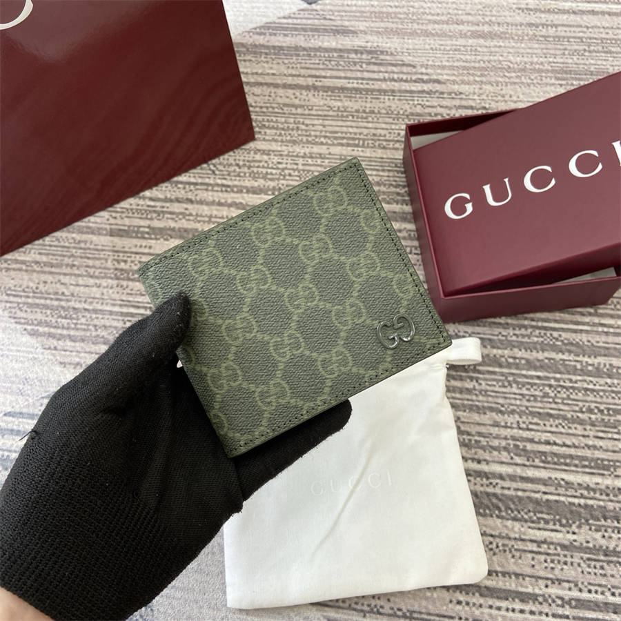 BIK【配全套专柜包装】饰GG细节钱包。Gucci小件皮革配饰突破设计界限,不断以个性方式焕新演绎经典单品。这款男士钱包将经典GG Supreme帆布与森林绿GG配件匠心糅合,成就现代时尚的精美配饰。米色和乌木色GG Supreme帆布,森林绿皮革滚边,黄铜配件,配绿色陶瓷效果饰面,云纹织物衬里GG细节,内部:卡片隔层,零钱小袋,1个钞票隔层。