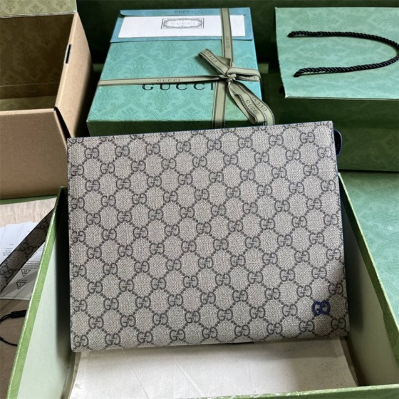 DFK《配全套原厂绿盒包装》饰GG细节手拿包。作为品牌标志性材质,GG Supreme帆布已然成为Gucci设计宇宙中的主打面料。在全新系列中透过Gucci美学视角得以焕新演绎。这款手拿包通体点缀字母交织图案。GG配件为单品增添品牌标识魅力。米色和乌木色GG Supreme帆布,蓝色皮革滚边,黄铜配件,配蓝色陶瓷效果饰面,棉麻云纹织物衬里,GG细节,内部:六个卡片隔层,可拆卸腕带,拉链开合。