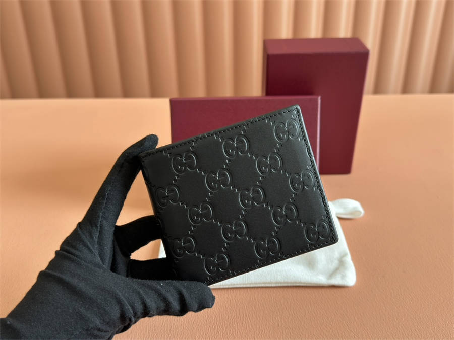 BFK【配置专柜全套包装】饰GG细节钱包。Gucci小件皮革配饰突破设计界限,不断以个性方式焕新演绎经典单品。这款男士钱包将经典GG Supreme帆布与黑色GG配件匠心糅合,成就现代时尚的精美配饰。黑色皮革滚边,云纹织物衬里GG细节,内部:8个卡片隔层,1个钞票隔层。