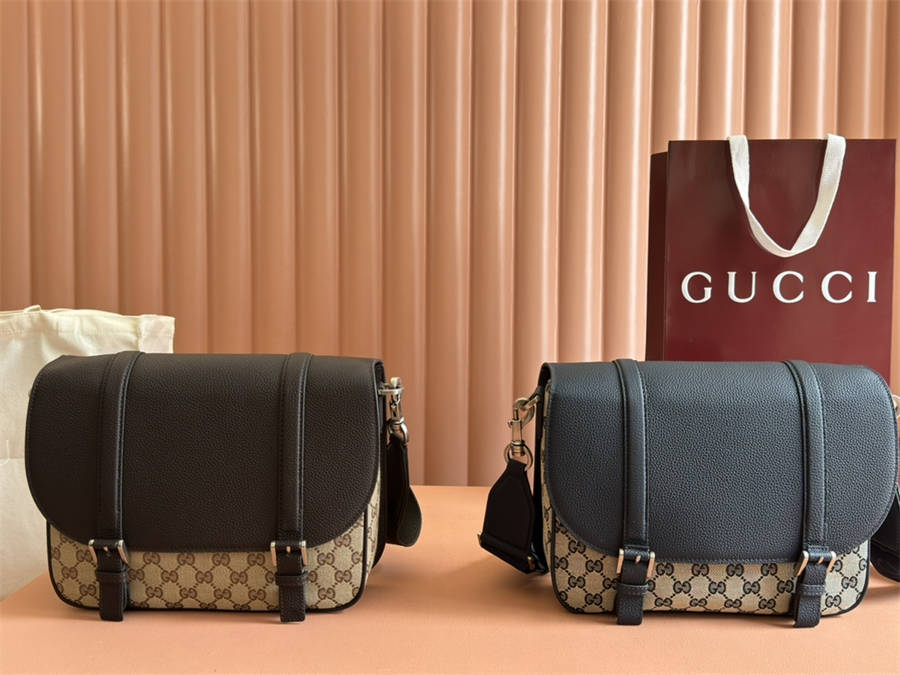 斜挎包、公文包和托特包等甄选男士手袋以实用细节诠释焕新风尚。这款斜挎包以标志性经典GG帆布精制而成,其中米色和蓝色配色与轻盈质感相得益彰,GG图案更为手袋注入强烈的标识内涵。精心配设一个拉链袋和一个平口袋,深蓝色皮革滚边令整个款型魅力倍添。