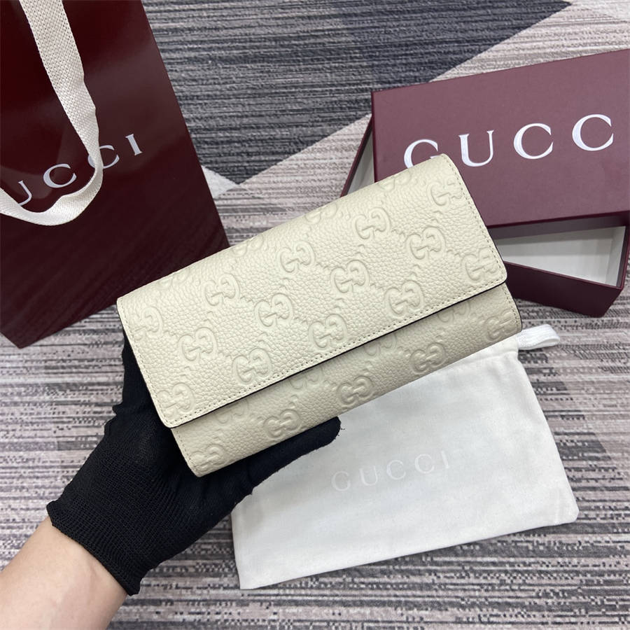 CFK(配全套包装)【新款】GG Emblem系列超柔软荔克色压花/全皮钱包