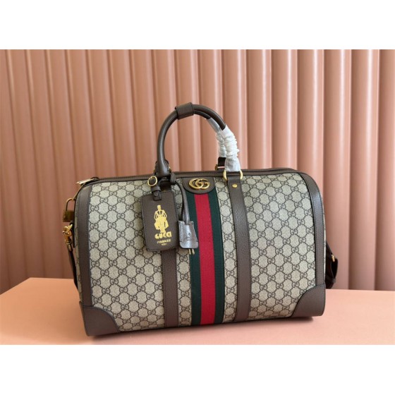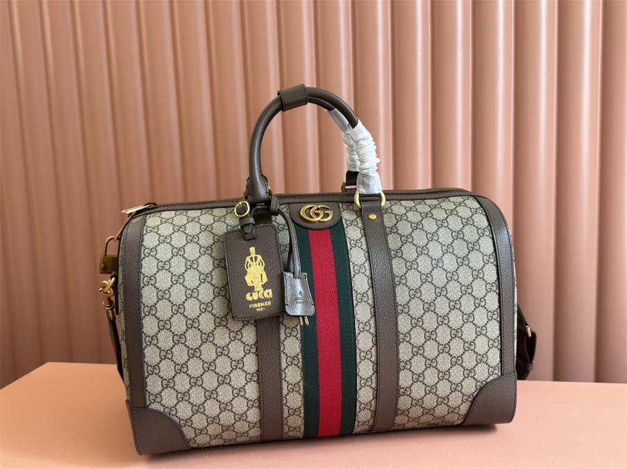 HHK【配置专柜礼品袋】Gucci Savoy系列中号旅行包。这款单品出自Gucci Lido系列,设计灵感源自意大利海岸的夏日风情和海滩俱乐部。荧光紫红融蕴创作总监的当代美学理念,以亮眼的波普风格生动诠释Ophidia系列。这款Gucci Savoy系列旅行包巧妙融合GG图案和条纹织带元素,搭配现代色调展现经典旅行单品的都市风范。米色和乌木色GG Supreme帆布,荧光紫红和棕色皮革滚边,金色调配件,红绿织带,棉麻混纺衬里双G,可拆卸钥匙扣、锁和全新个性化行李员识别标签,内部:两个拉链袋,提手(12厘米高)可调节帆布肩带(50厘米高)拉链开合,容量:28升。
