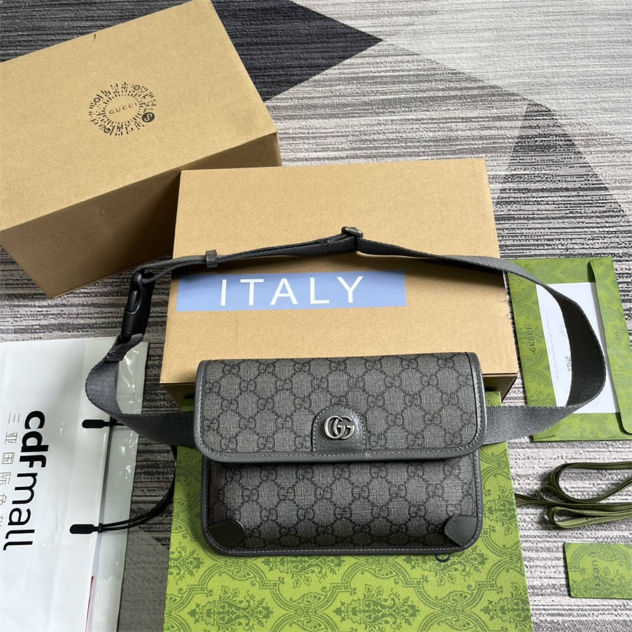 DCK(配全套包装)Ophidia系列融合Gucci传统精髓与现代设计,匠心呈献亮眼新作。这款男士腰包巧妙糅合双G配件和GG Supreme帆布,以灰色和黑色焕新演绎经典材质。腰部包带可调节,打造多种背携方式。灰色和黑色GG Supreme帆布,灰色皮革滚边,钯金色调配件,棉麻衬里双G,腰带长度可在52到81厘米之间调节,翻盖与磁力按扣开合,重量:约0.37千克。