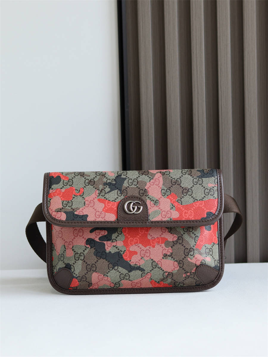 752597 Ophidia绿色印花GG小号腰包胸包