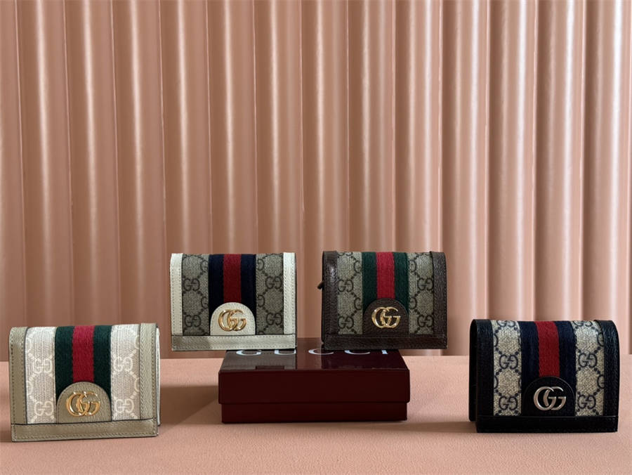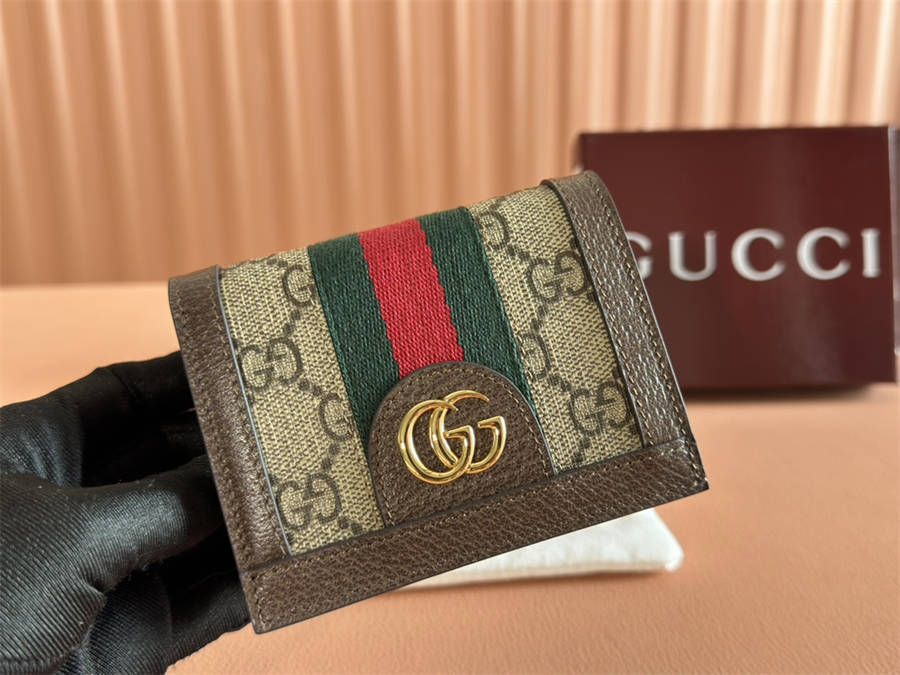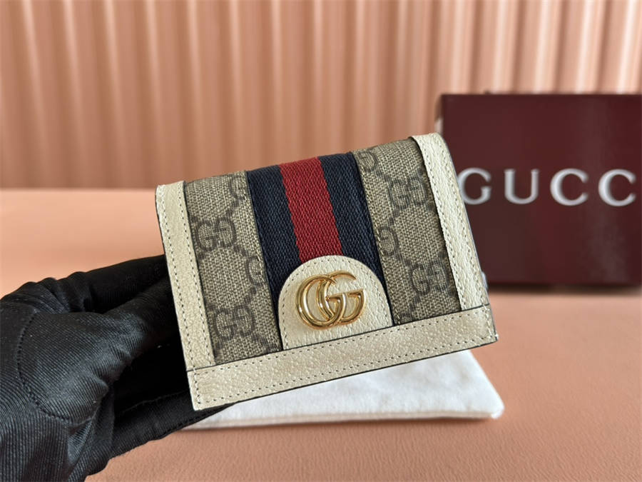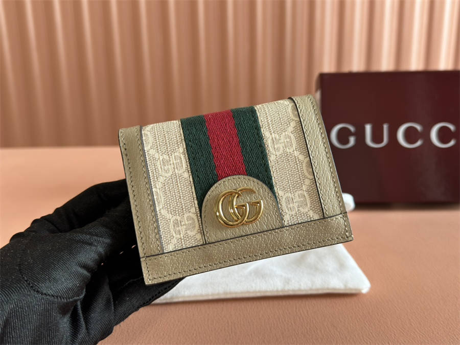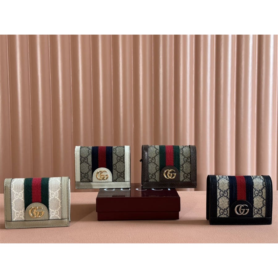 BJK【配全套专柜包装】G家 Ophidia系列小卡包钱包采用GG Supreme高级人造帆布,配以标志性图案与条纹织带,海外顶级五金精制而成,型号:523155 ,尺寸: W11xH5xD3cm。