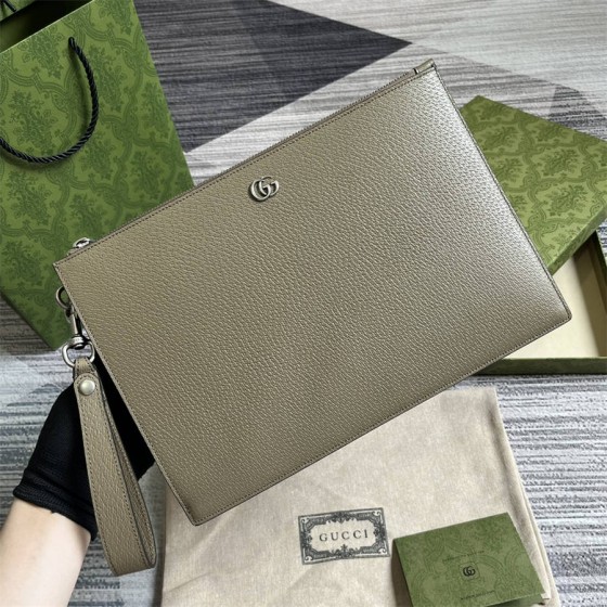 DKK【配全套专柜绿色包装】GG Marmont系列手拿包,Gucci持续更新配色,添加更精致的色调。在全新配色与组合中,品牌运用现代视角,重新诠释经典GG Marmont系列。这款手拿包采用灰色皮革精心打造,品牌标识配件则以钯金色调呈现。灰色皮革,钯金色调配件