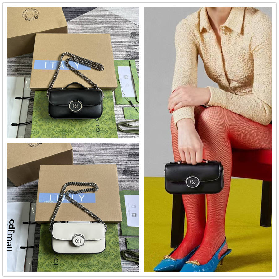 FDK(配全套包装)Petite GG系列迷你手袋。经典双G元素以迷你尺寸呈现于迷你GG系列各式全新皮具之上,为该知名标识注入一抹含蓄内敛的气韵。优雅迷人的钯金效果标识与纯色皮革及GG Supreme帆布巧妙融为一体。品牌标识为这款黑色皮革迷你手袋汇入别样风采。黑色皮革,钯金色调配件,绒面材质质感超细纤维衬里双G,内部口袋,后袋提手(3厘米高)可拆卸链式肩带(30厘米高)推按式锁扣开合。重量:约0.41千克。