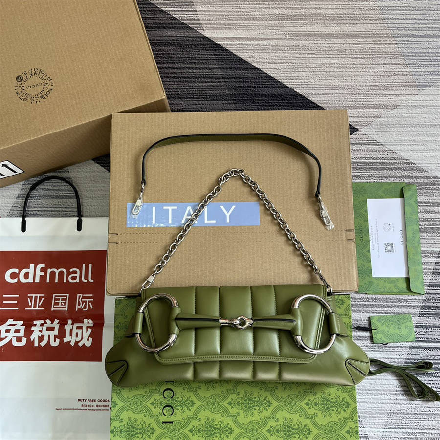 HIK(配全套包装)Gucci Horsebit Chain中号肩背包,Gucci焕新演绎品牌经典元素,将典藏设计与时尚创意巧妙糅合,尽展当代美学理念。这款手袋匠心缀饰2000年代初风靡一时的马衔扣设计,传承品牌经典。这款手袋在2023秋冬系列焕新演绎,运用多种色彩和纹理呈现当代格调。黑色绗缝皮革,钯金配件,作为附带Gucci Tag的精选单品,本商品支持NFC技术,助您验证真伪,享受数字化的创新体验。马衔扣,内部:一个卡片隔层和口袋,可拆卸皮革包带(21厘米高)可拆卸链式肩带(20.5厘米高)磁力按扣,重量:约0.7千克。