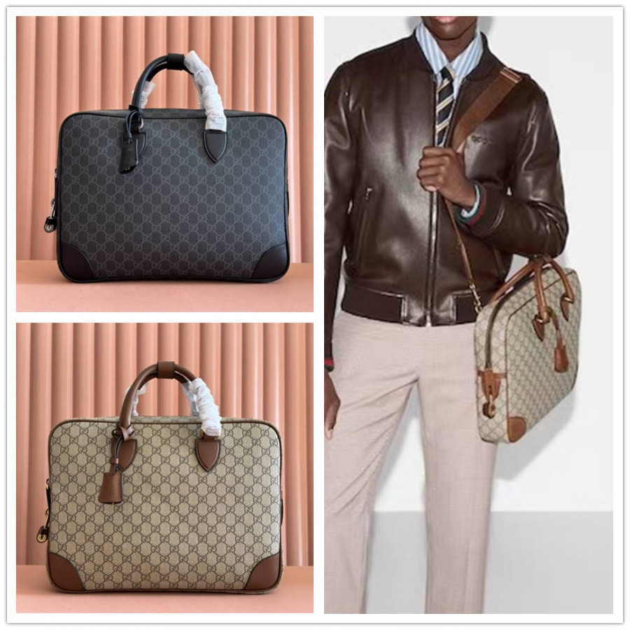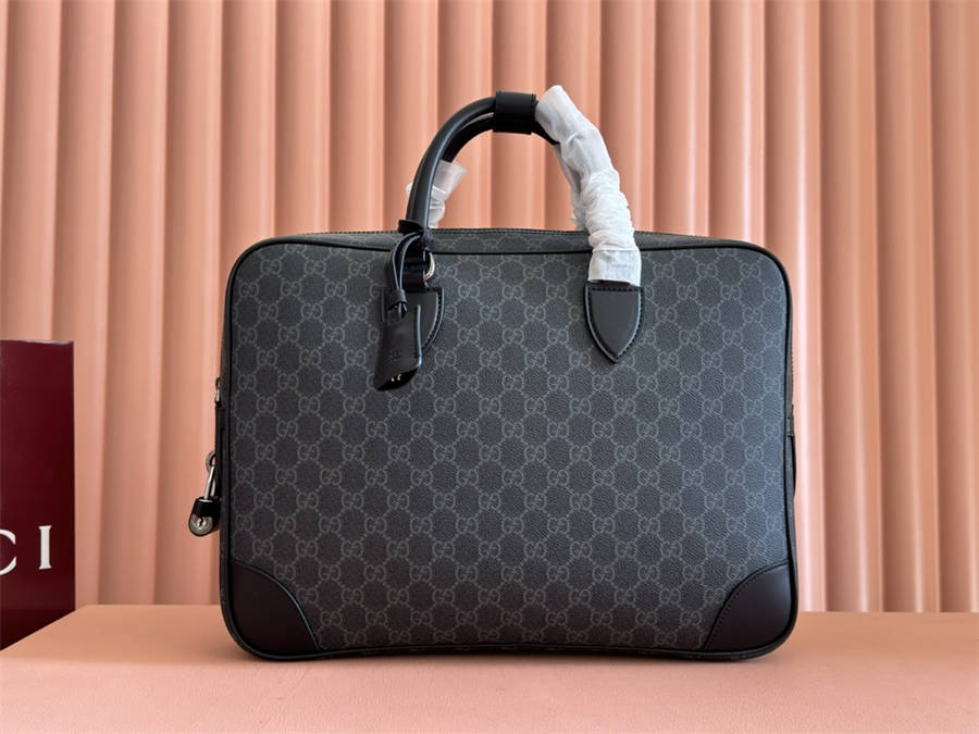 HBK【配置专柜礼品袋】 全新GG Emblem系列男士旅行单品焕新诠释品牌的隽永优雅风范和精湛工艺。这款公文包以全新黑色GG字母图案涂层织物匠心打造,设有多个功能隔层和一个D形环,D形环可用于系挂配饰。