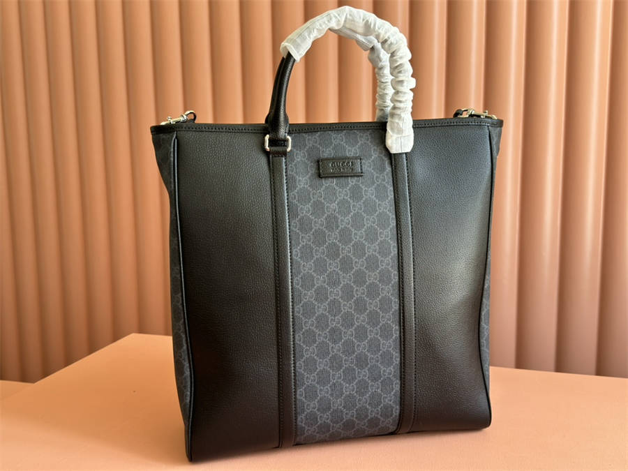 GIK【原厂皮配置专柜礼品袋】公文包和托特包等甄选手袋以实用细节诠释焕新风尚。这款公文包以黑色皮革和GG Supreme帆布匠心打造,设有一个笔记本电脑隔层,并配有一条可调节肩带。“Made in Italy”皮革标牌为整个设计注入一抹优雅的品牌标识魅力。型号795460尺寸36x38x12.5cm