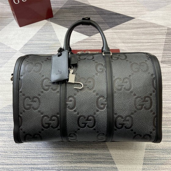 BKKK【新品】作为对Guccio Gucci先生姓名首字母的焕新演绎,超级双G图案以超大尺寸亮眼呈现,营造经久不衰的品牌标识魅力。这款小号旅行包以灰黑色超级双G标识彰显魅力。
