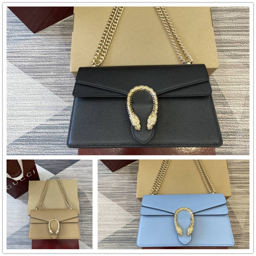 HCK【配全套专柜包装】这款单品采用浅蓝色皮革匠心打造,双虎头锁扣搭配翻盖设计,滑动链条可自由调节长度,随心打造不同穿搭风格。