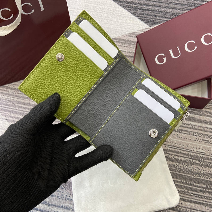BJK【配全套专柜包装】全新配色结合丰富元素,焕新演绎2025早春系列经典小配饰。这款双折钱包以安可拉红色牛皮革匠心打造,巧妙融入Gucci标识,并配以燕麦色牛皮革内里。
