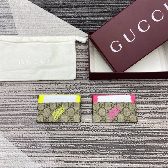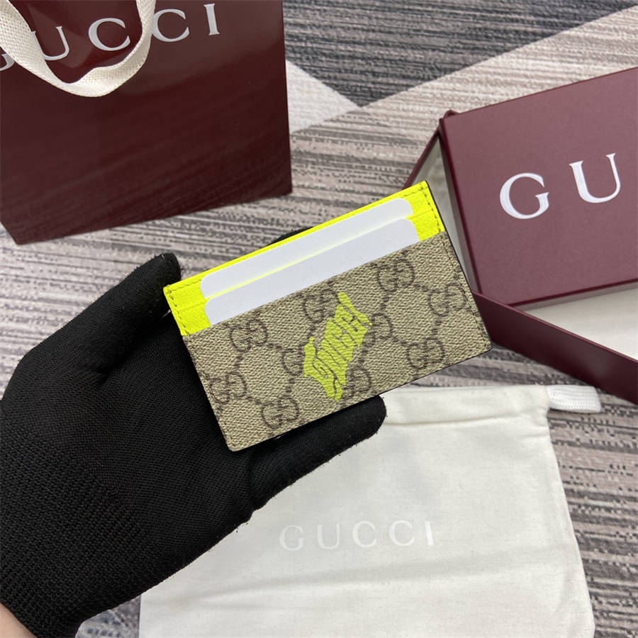 BFK《配全套原厂专柜包装》【新品】2025早秋系列中,中国艺术家咖喱牛(Currynew)焕新演绎品牌标识,为男士成衣、皮具和配饰增色添彩。这款双色卡片夹以经典GG字母交织图案涂层织物匠心打造,巧妙融入Gucci印花和撞色皮革滚边,令整个设计愈发丰满。