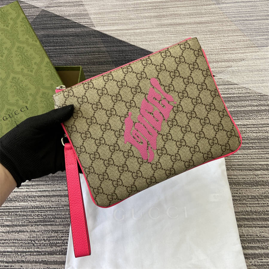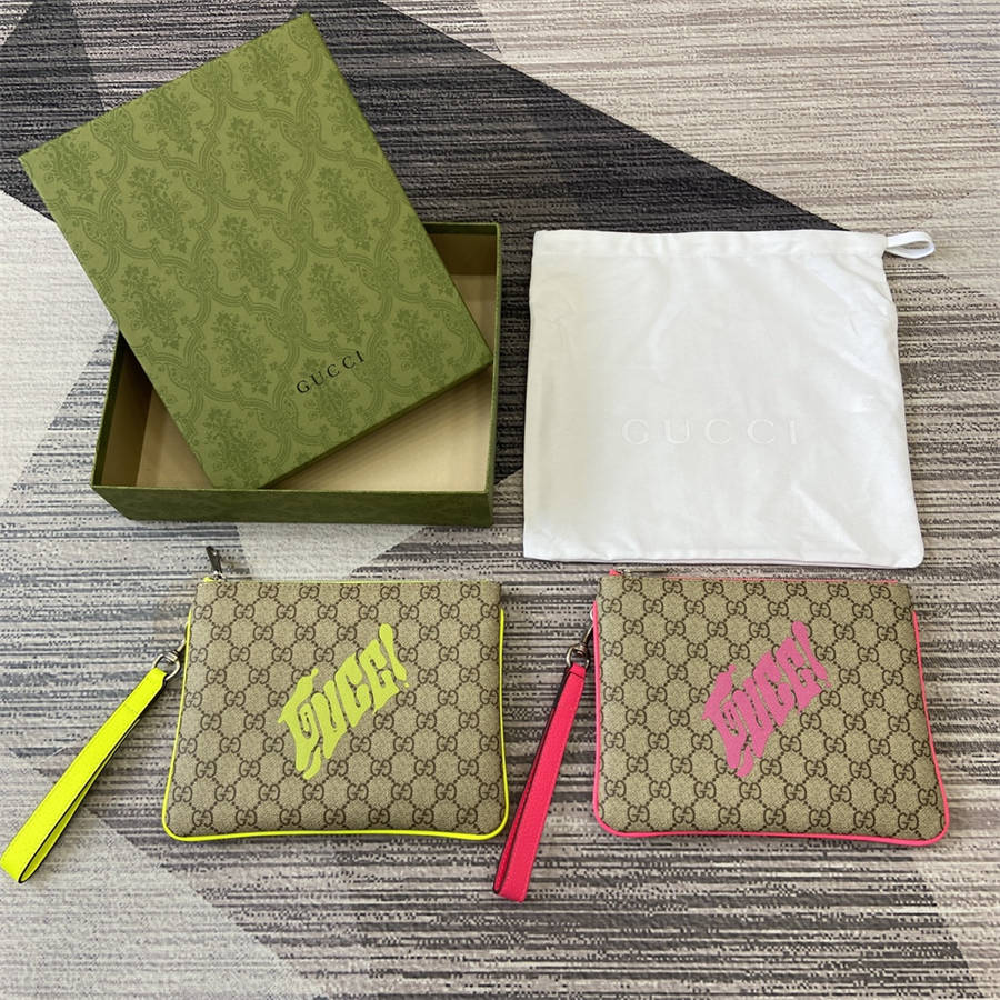 DGK【配全套包装】2025早秋系列中,中国艺术家咖喱牛(Currynew)焕新演绎品牌标识,为男士成衣、皮具和配饰增色添彩。这款手拿包以经典GG字母交织图案涂层织物匠心打造,巧妙融入Gucci印花和撞色皮革滚边,令整个设计愈发丰满。