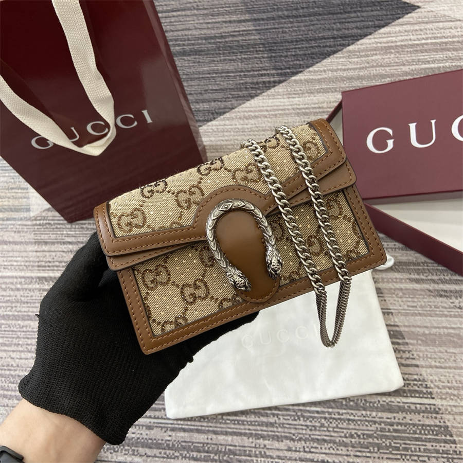 ECK【配全套专柜包装】这款链式迷你肩背包造型挺括,以GG Supreme帆布匠心打造,配有一个钥匙扣,可将该手袋系挂于其他大号手袋上。经典虎头锁扣,这一独特细节的灵感来自希腊酒神狄俄尼索斯(Dionysus),在神话世界里,他曾身骑宙斯派来的老虎跨越底格里斯河。该配饰也可作为斜挎包使用。