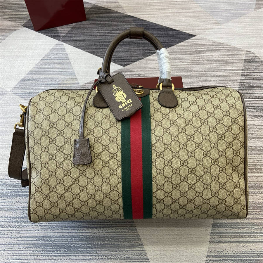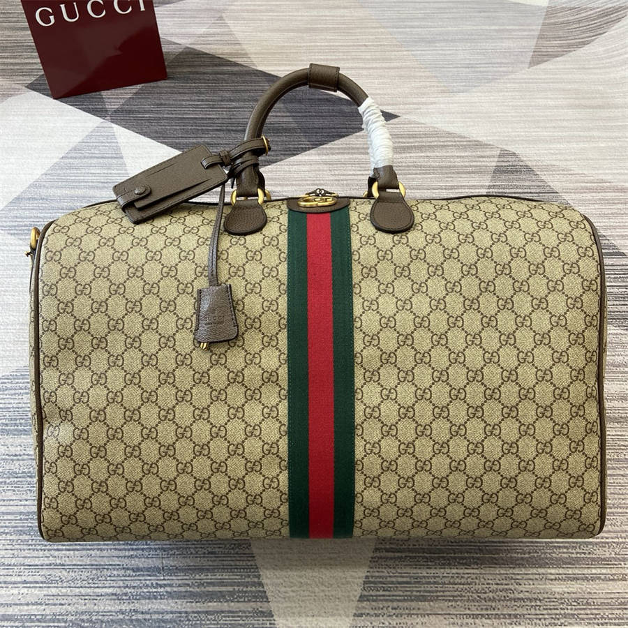 HJK IFK Gucci Savoy系列匠心融蕴米色和深棕色两大配色,搭配经典廓形,甄选触感柔软的织物打造。这款旅行包以GG字母交织图案涂层织物打造,匠心缀饰双G标识和织带细节。