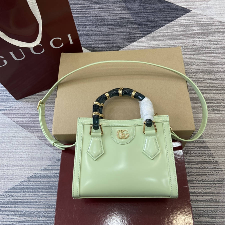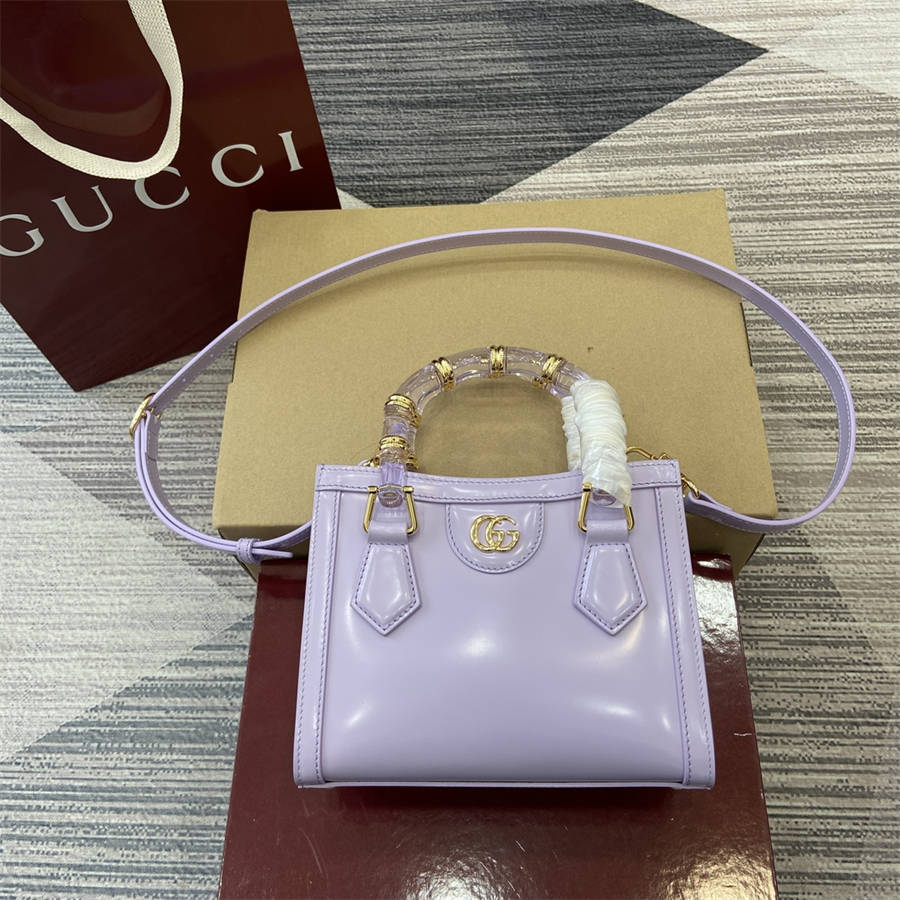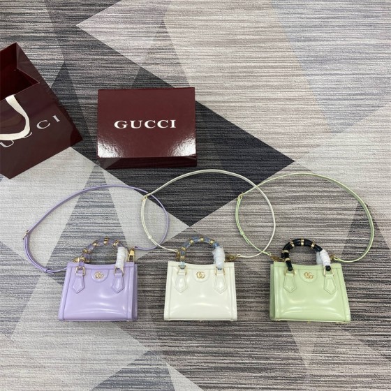 HIK【配全套专柜包装】2025春夏系列中,Gucci Diana系列以树脂和黄铜细节焕新演绎经典竹节配件。背法多样,既可斜挎亦可肩背。
