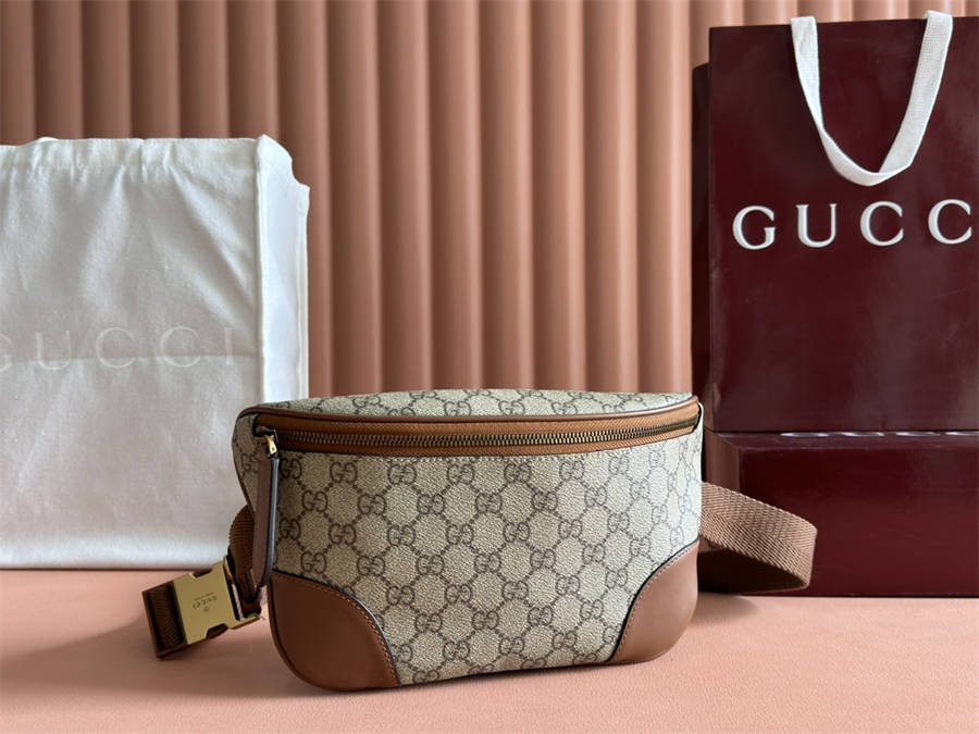 EEK【配置专柜全套包装】全新GG Emblem系列男士旅行单品焕新诠释品牌的隽永优雅风范和精湛工艺。这款腰包以全新米色和深棕色GG字母图案涂层织物匠心打造,搭配开口袋,外部D形环可挂配饰。