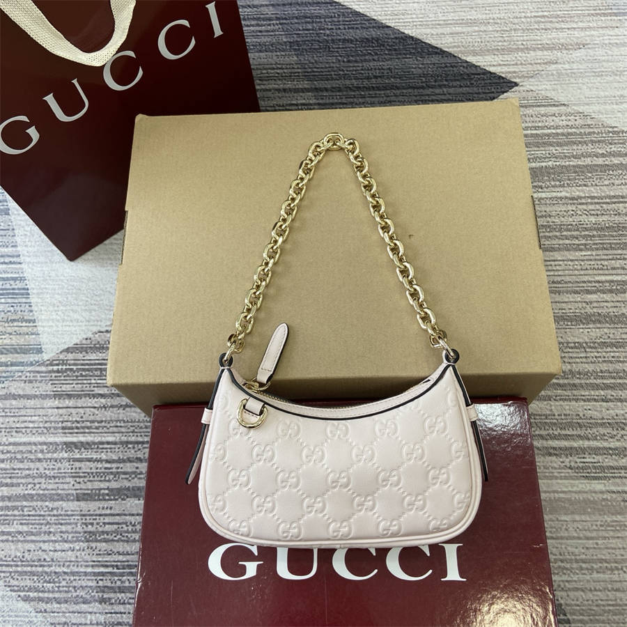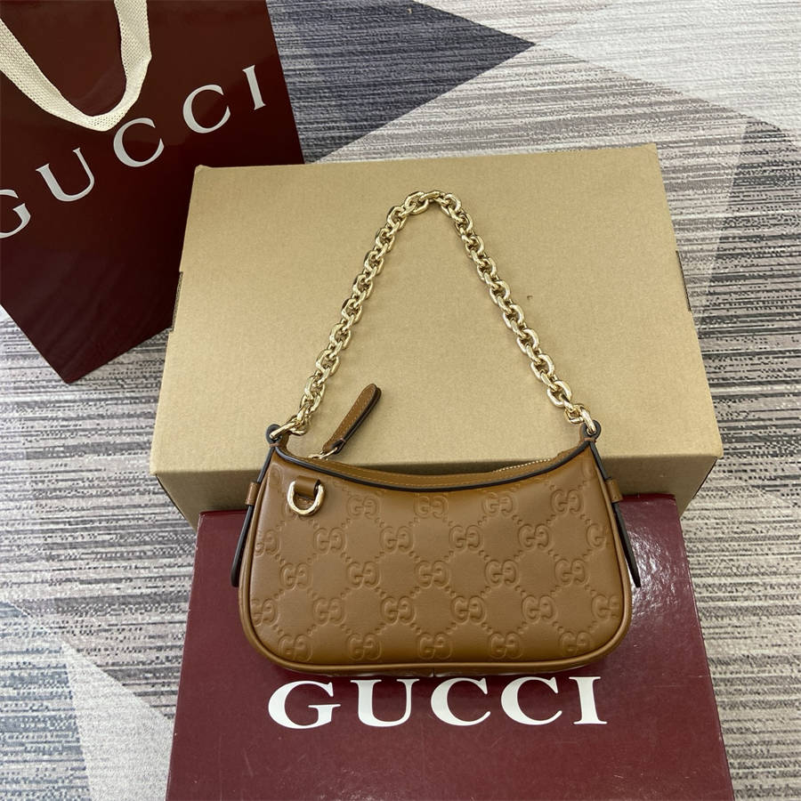 EFK【配全套专柜包装】2025秋冬系列, 这款小号肩背包选用圆形廓形搭配金色调配件和链式背带,彰显GG Emblem系列风尚。采用拉链开合设计,内部配有一个卡片口袋,棉麻衬里再添精致质感。