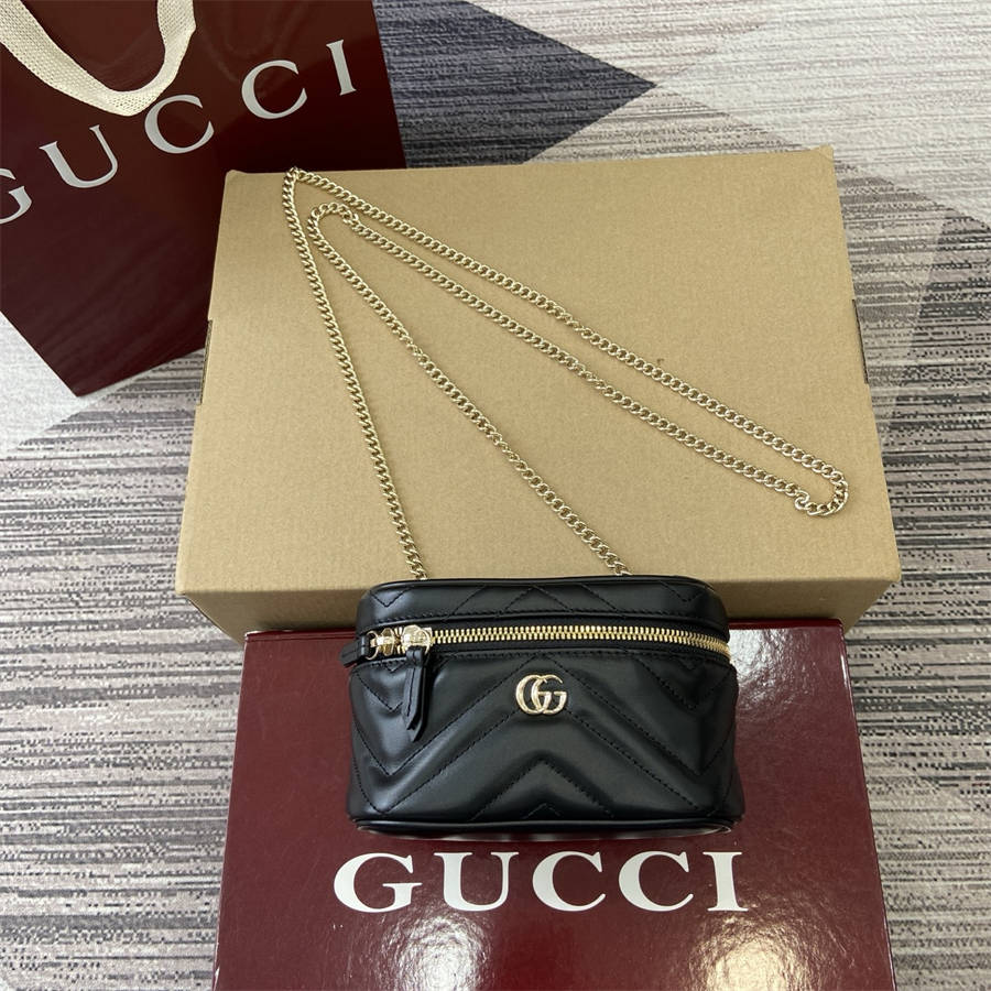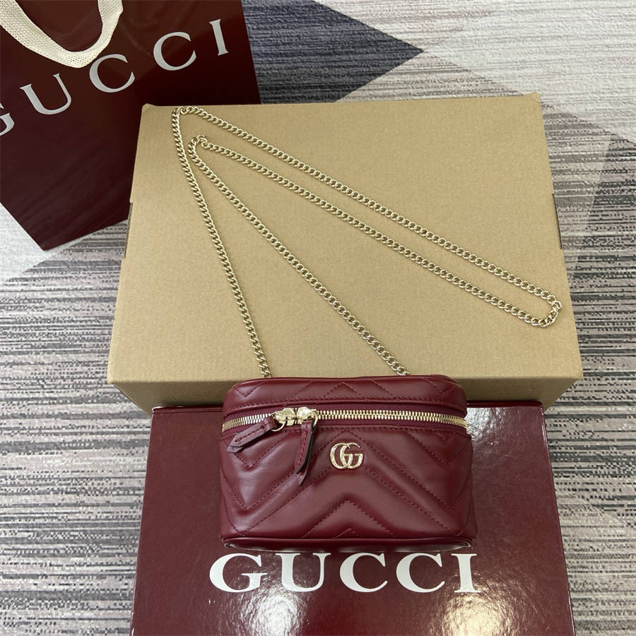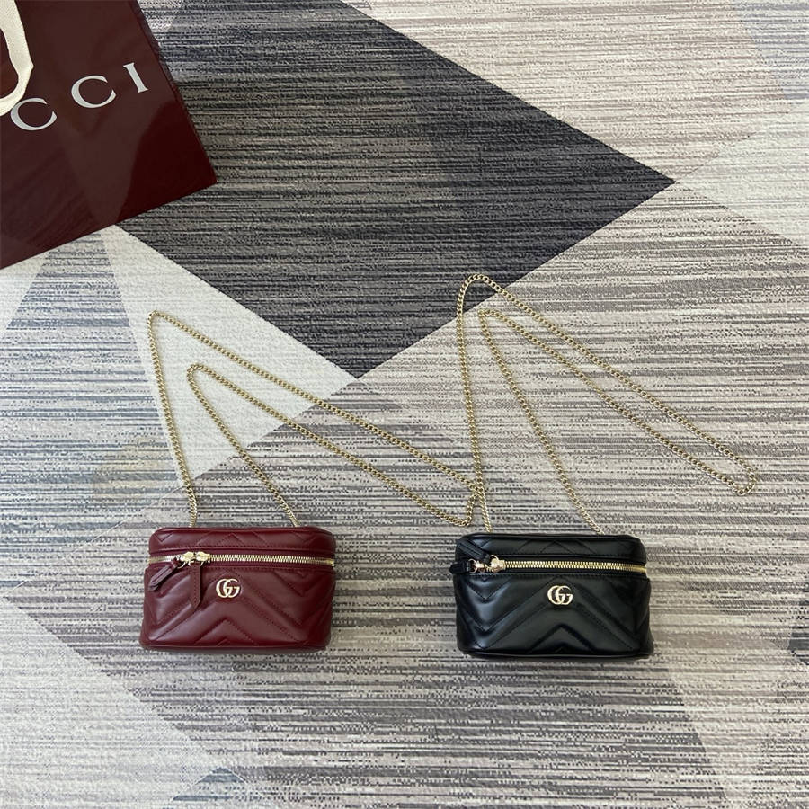 EJK【配全套专柜包装】品牌标志性GG Marmont系列倾情推出多款富有现代感的时尚包袋。这款链式化妆包缀饰20世纪70年代初次亮相的品牌典藏标识。