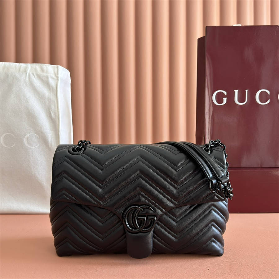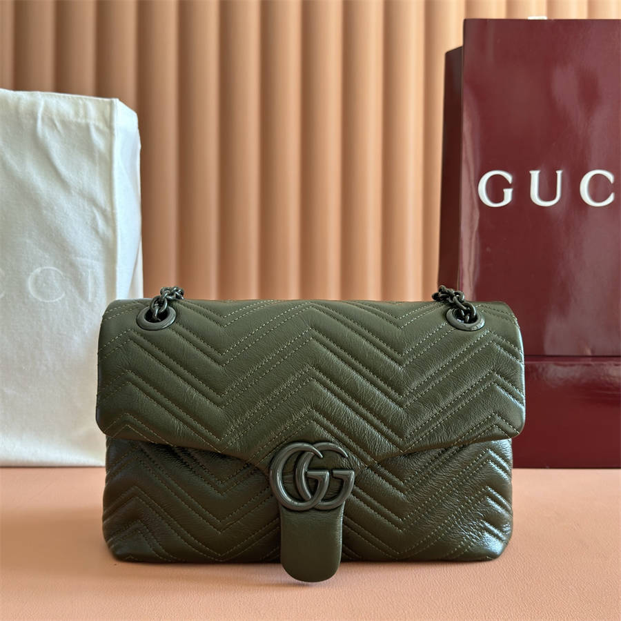 ICK【配全套原厂专柜包装】2025秋冬系列, 品牌标志性GG Marmont系列匠心融蕴经典双G元素和切面链式包带,缔就柔软不失挺括的廓形设计。这款单品采用柔软轻质绗缝V型牛皮革匠造而成,搭配同色调珐琅配件与链条。