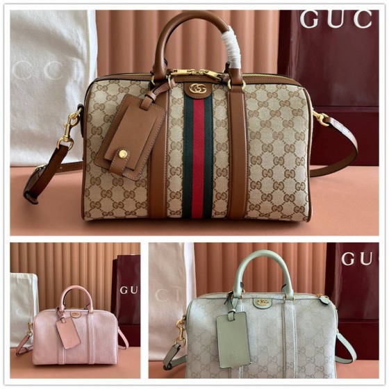 FFK【配置专柜全套包装】Ophidia系列以标志性条纹织带与金色调双G元素致敬品牌传承。这款波士顿包以GG帆布打造,选用经典配色为本季造型增色添彩。