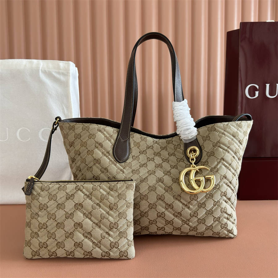 FHK GEK【配全套包装】Generation Gucci系列深入探索品牌的典藏和视觉代码,将不同世代的设计融合成一个美学叙事。这款手袋点缀标志性配件坠饰,可于挺括托特包与柔软水桶包造型间随心变换,带来多种搭配可能。