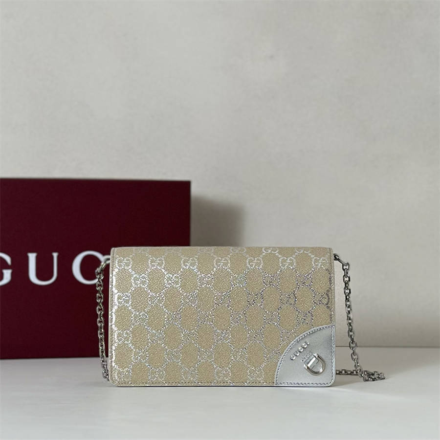 847090 GG Emblem系列纤薄水桶包(银色) 编号 EIK【配全套包装】2025秋冬系列, 这款迷你水桶包以实用设计焕新演绎品牌元素,为全新GG Emblem系列增添一款力作。这款迷你水..