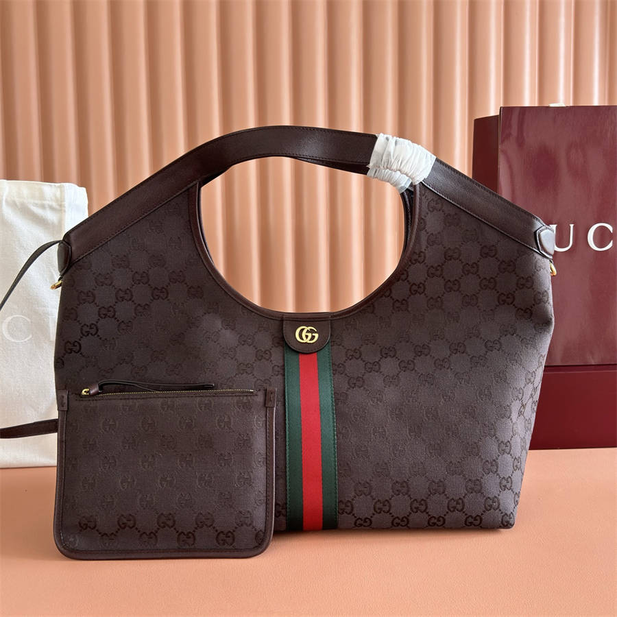 Gucci Giglio系列全新亮相佛罗伦萨2026早春时装秀,致敬品牌意式根源,融合隽永传承与革新精神。这款大容量托特包采用GG帆布匠心打造,缀饰织带滚边,并配有一个可拆卸的手拿包。