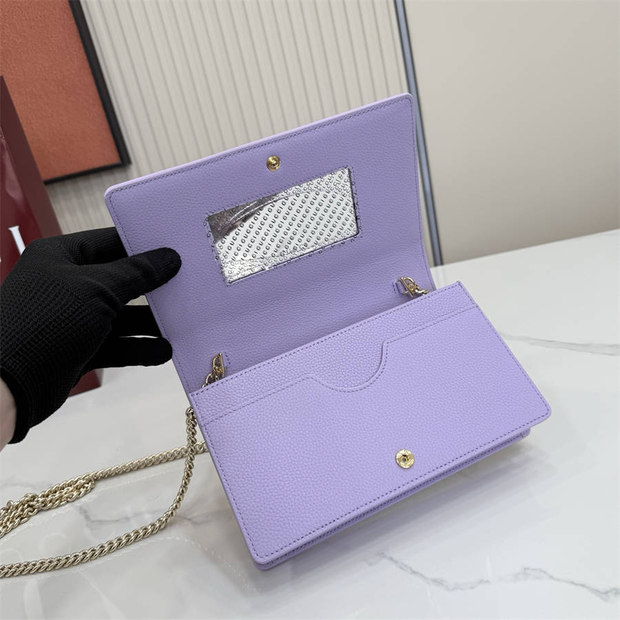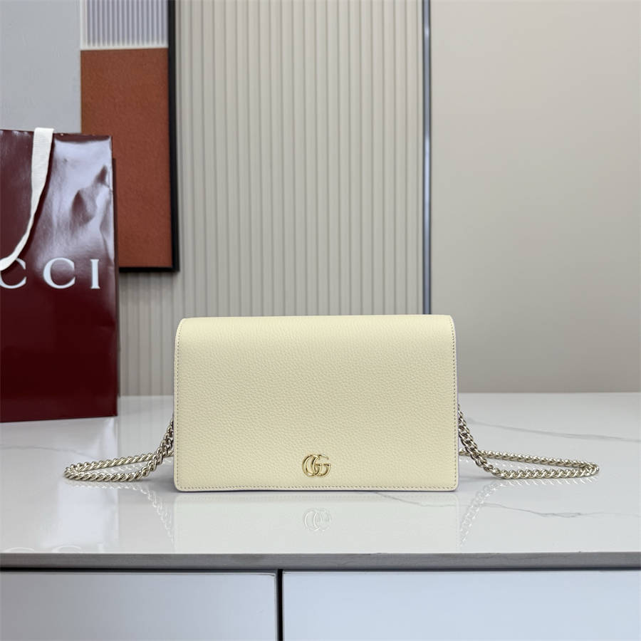 DFK【配全套包装】品牌将多种清新色调引入GG Marmont系列。这款链带钱包以浅黄色牛皮革匠心打造,巧妙融入标志性双G造型配件。