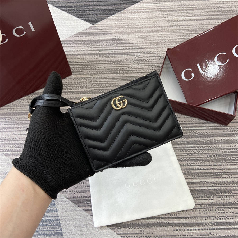 CCK【配全套专柜包装】这款GG Marmont系列钥匙包以黑色V型Matelassé牛皮革打造,内部配有一个钥匙钩扣。纤长的线条结合该系列的标志性双G造型配件,令人一眼心动。