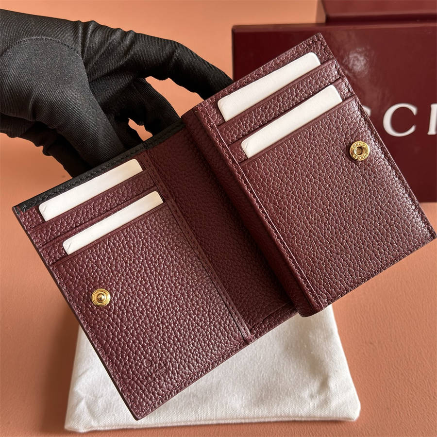 CDK【原厂皮配置专柜全套包装】772738 这款GG Marmont双折钱包由黑色皮革和Gucci Rosso Ancora制成,带有小的金色双G五金细节。配件配有拉链口袋和卡扣。